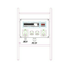 2 db egyfázisú (3P) 16A/230V, 1 db háromfázisú (5P) 16A/400V és 1 db háromfázisú (5P) 32A/400V aljzat
