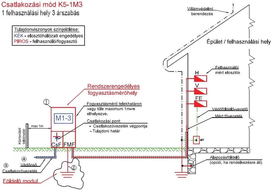 K5-1M3: Földkábeles csatlakozás, MH-telekhatáron,